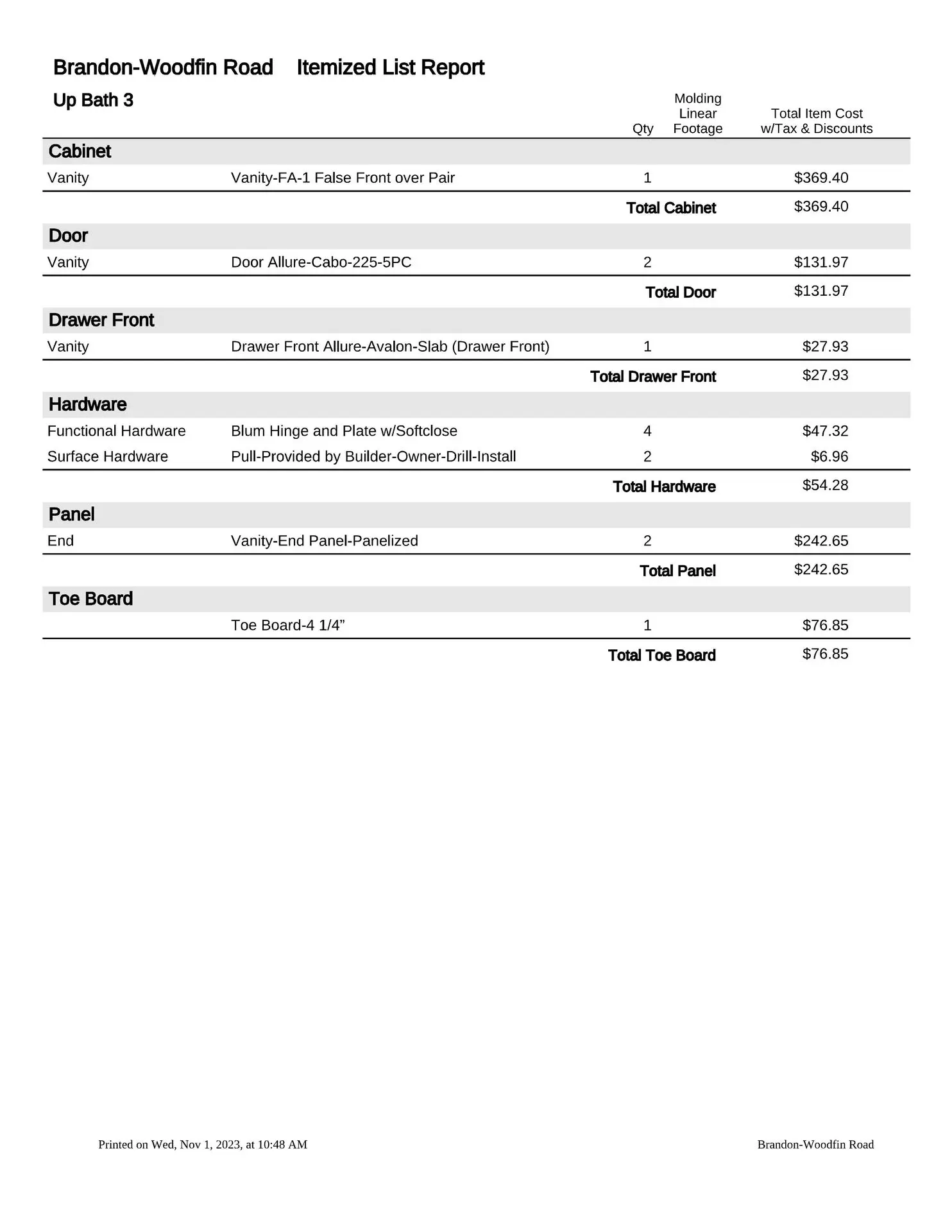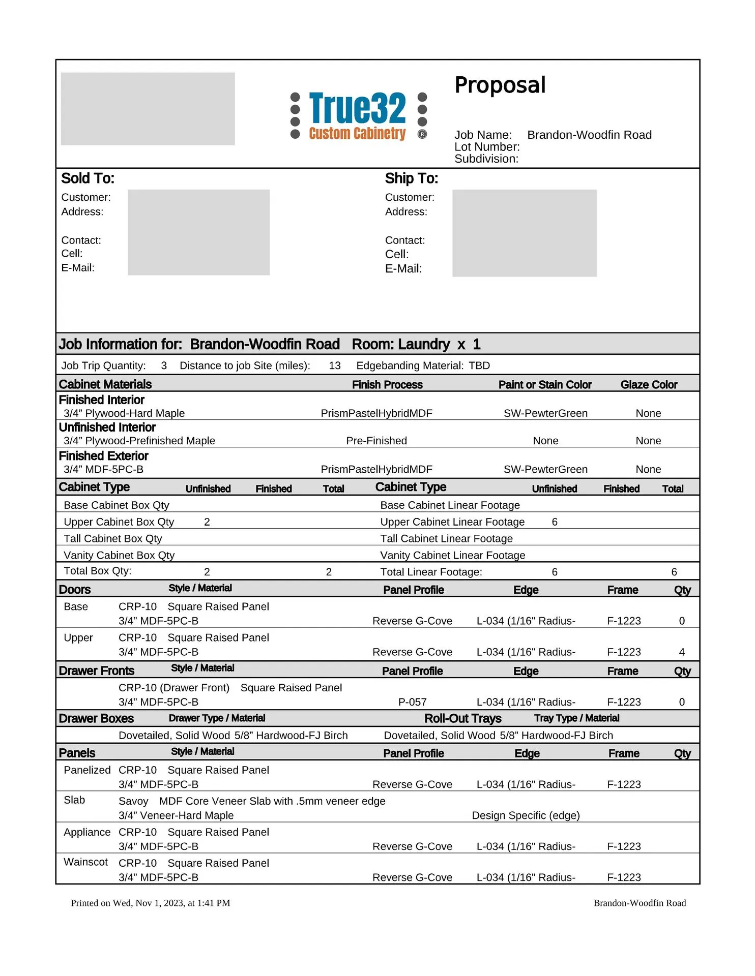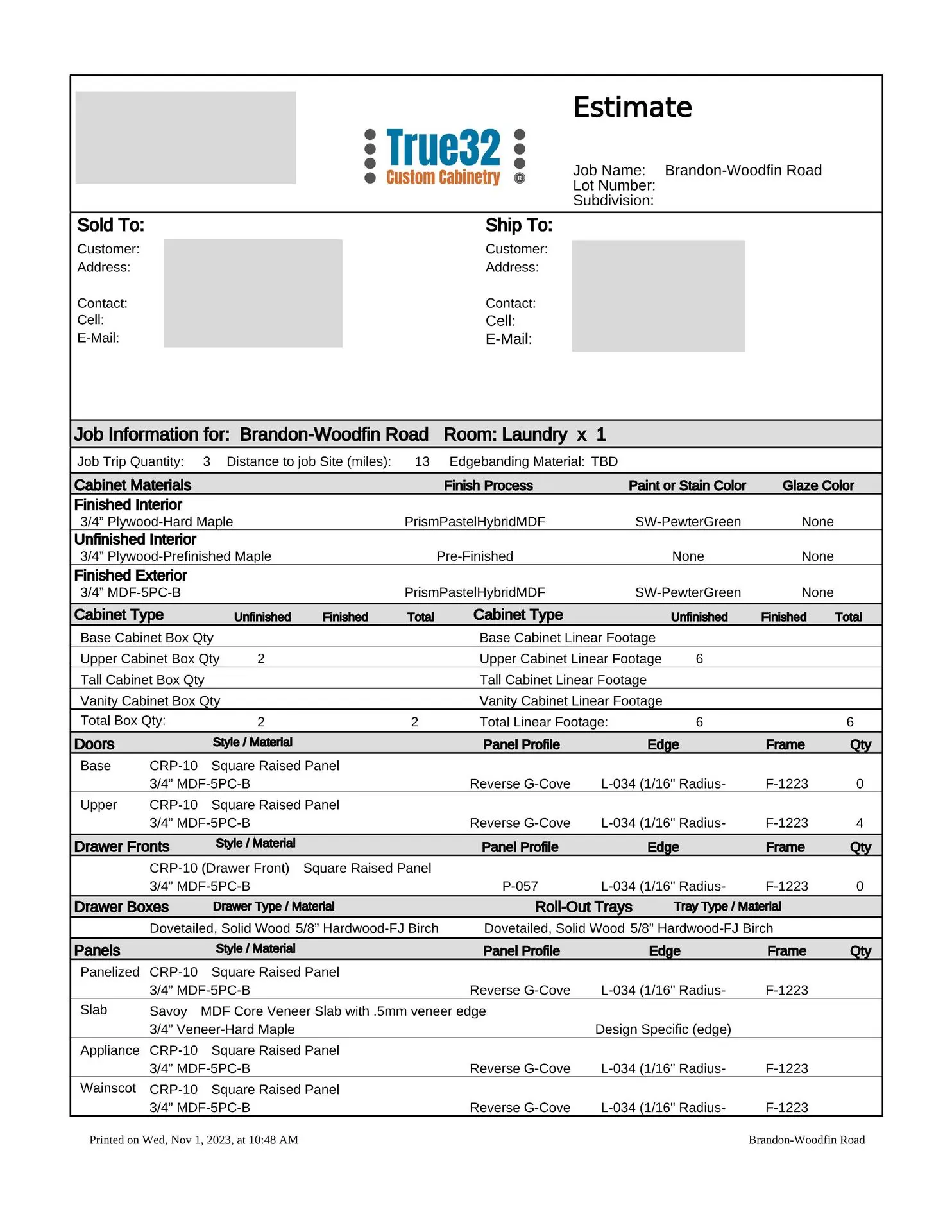 At this point, we will provide you with a formal estimate. These estimates are very detailed and will provide you with the information you need to make a fully educated decision about your custom cabinetry requirements. We are more than happy to provide several alternate pricing scenarios, so please do not hesitate to ask. If you think you might want to upgrade to an applied mold door, upgrade the drawer box, change from slab to raised panel ends, or any other change, addition or subtraction, we will be more than happy to accommodate those change requests (this is the time to do so, not after the manufacturing process has been put into motion).