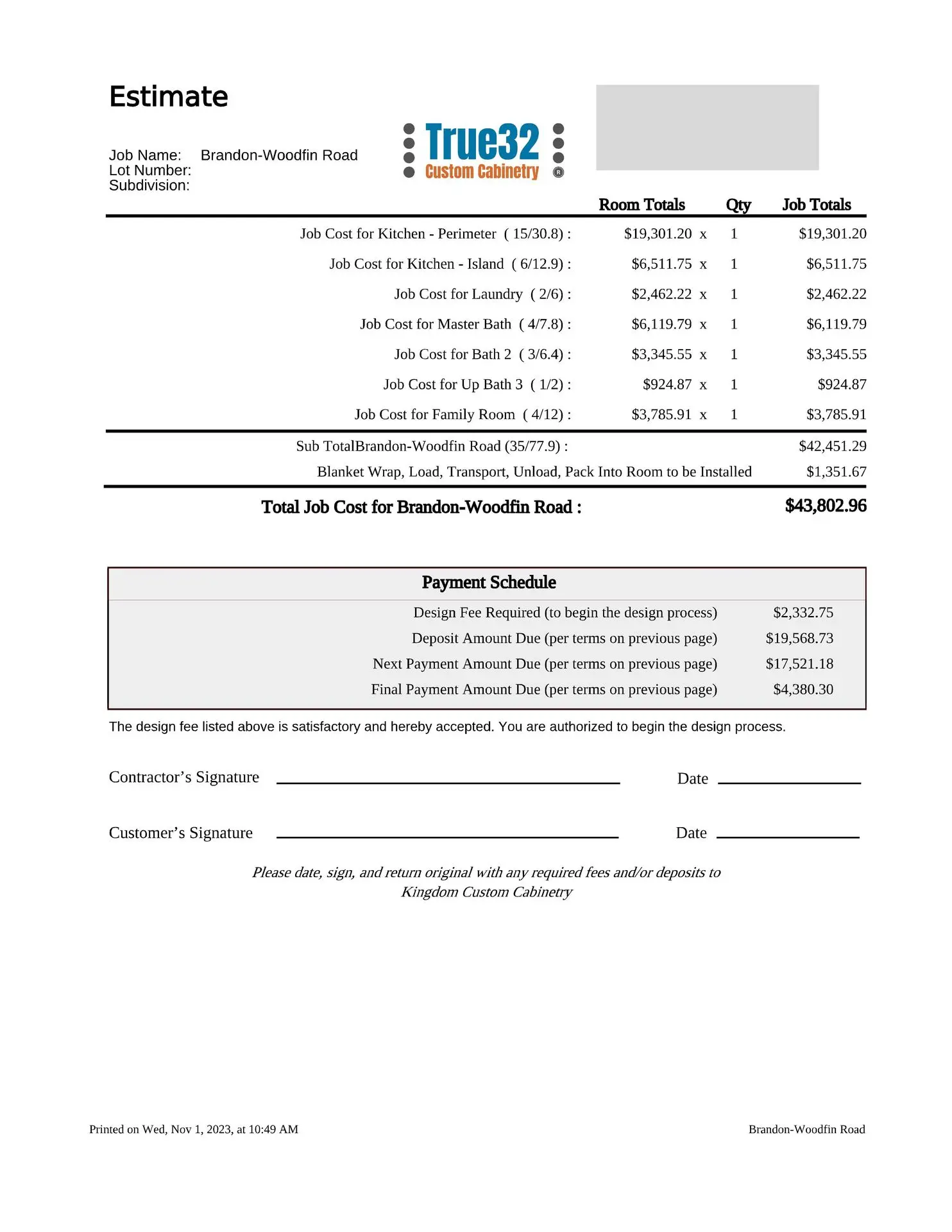 - Signed copy of the last page of your estimate