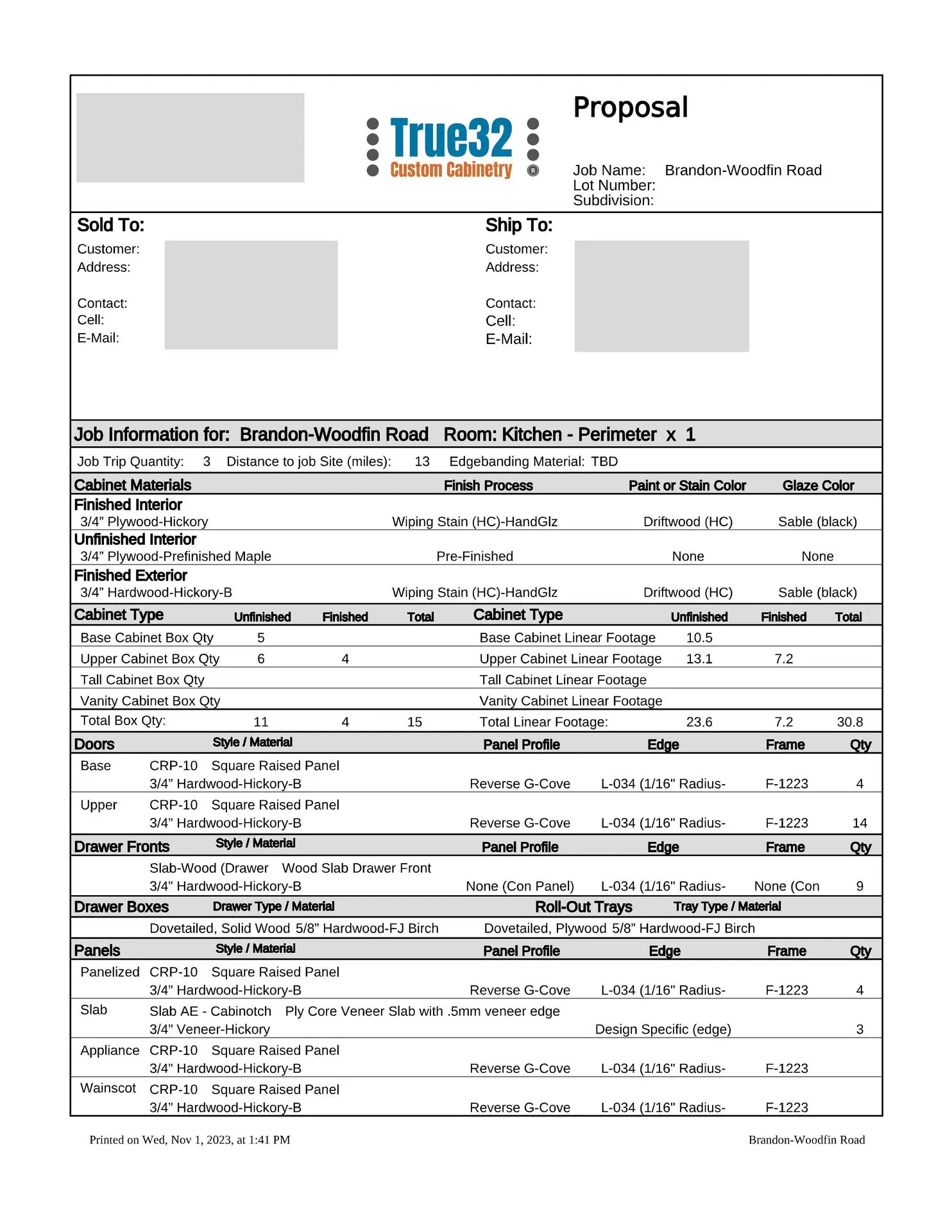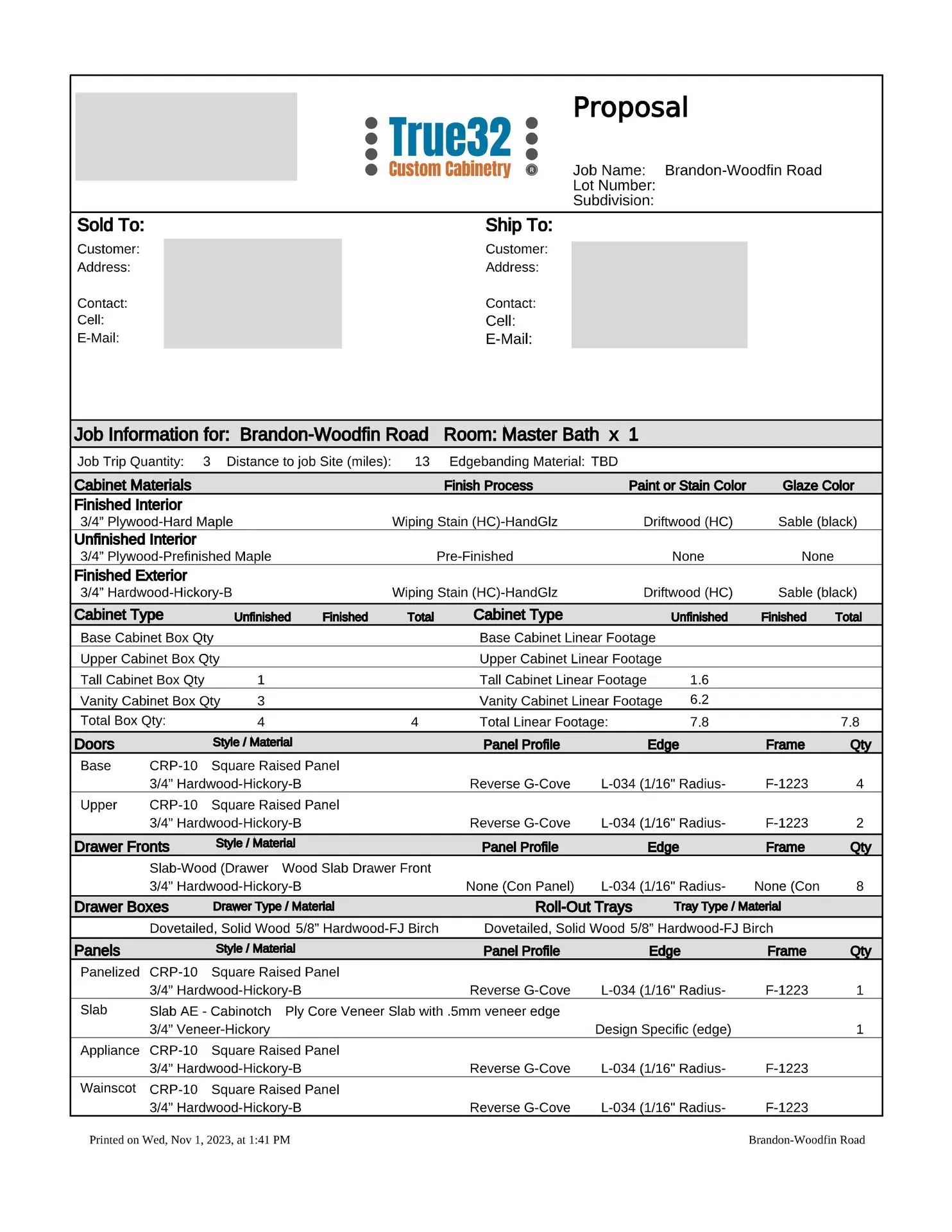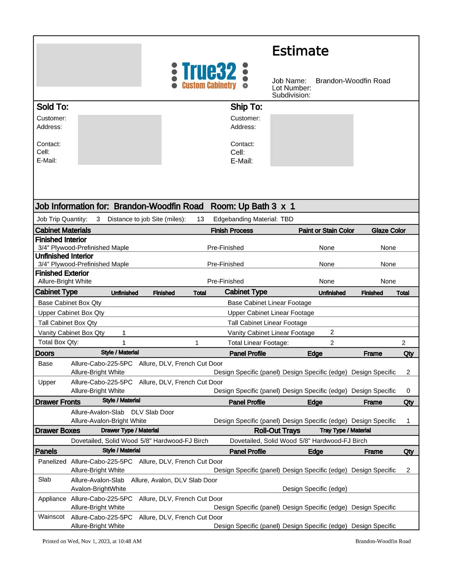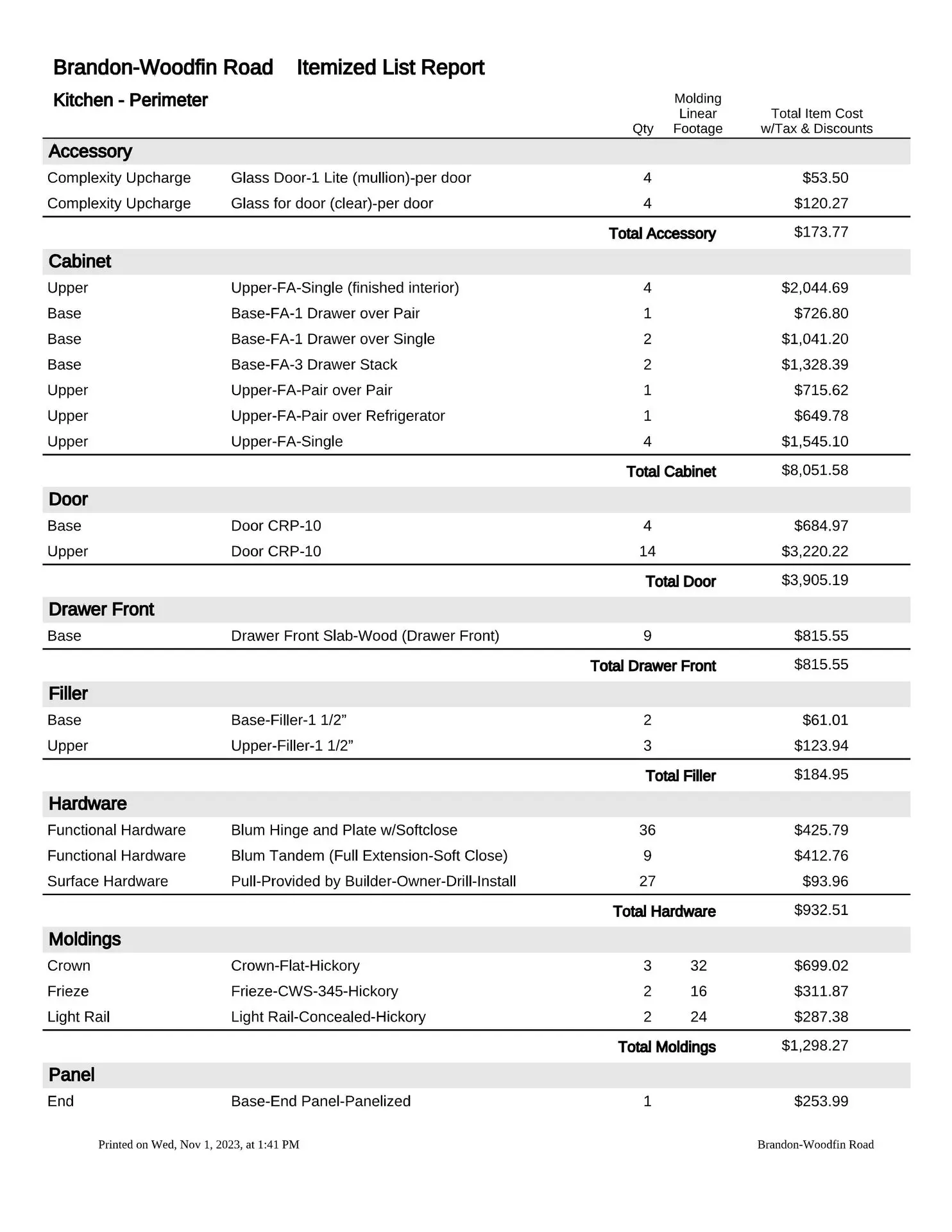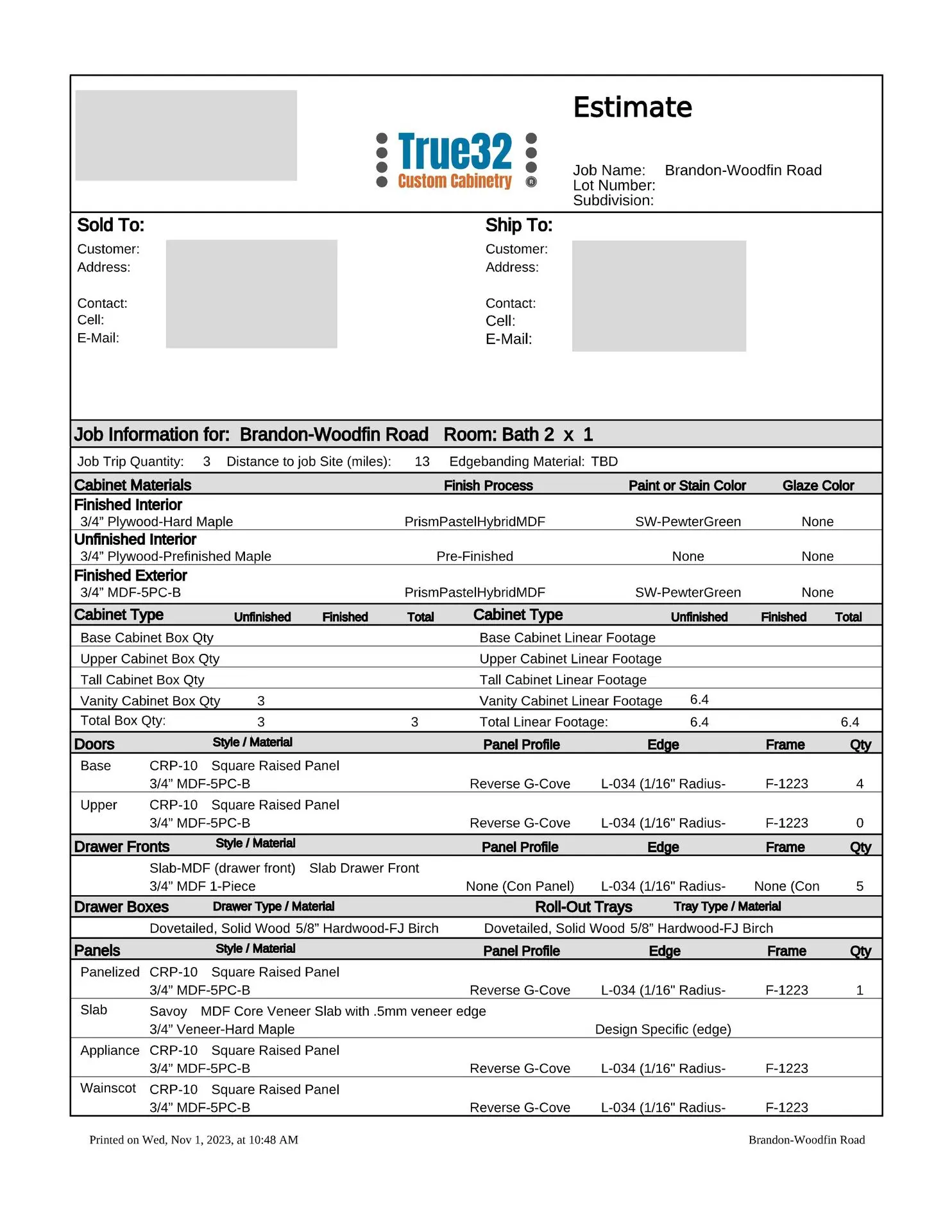 Typically our estimates are sent to you via e-mail as a PDF attachment, but we can mail your estimate if needed. If you prefer face-to-face meetings, then we will be glad to schedule a virtual meeting, or a meeting in our showroom to go over your estimate, and even run a few “what if” scenarios while you are here if that would be beneficial to you. Our sophisticated estimating software makes it very easy to change wood species, finishes, or door styles, and get an alternate project cost.